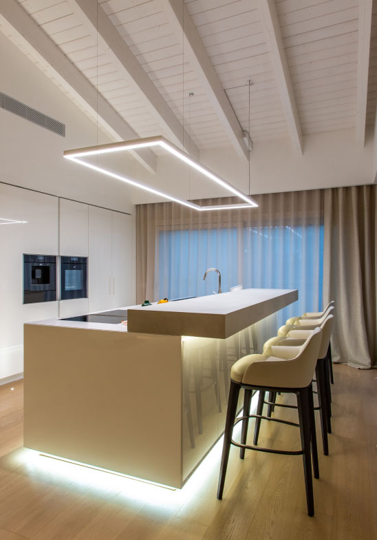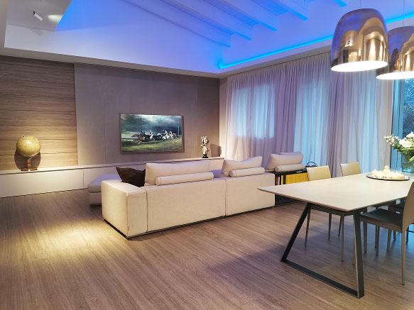 Possibilità di richiedere un progetto illuminotecnico personalizzato o estendere il servizio fino alla gestione chiavi in mano degli interni.